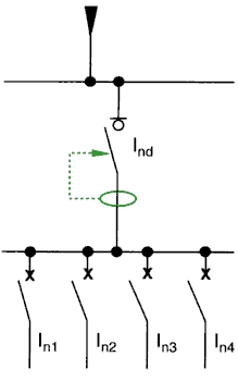Fig. 5.46: interruptor diferencial, aguas arriba de un grupo de interruptores automàticos.