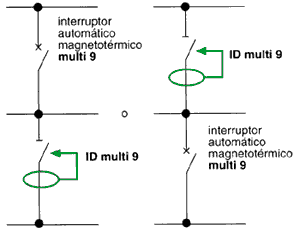 abajo de un interruptor automático magnetotérmico y en la misma línea (fig.