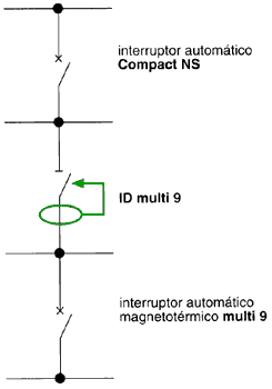Fig. 5.45: interruptor diferencial aguas abajo de un interruptor automático.