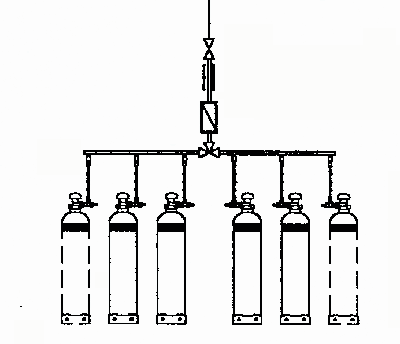 ... luego se tomarán 3 botellas en descarga simultánea y 3 botellas en reserva, es decir que por vaporización sería necesario montar una batería de 3+3 botellas.