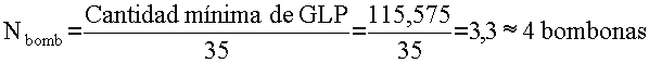 Sabiendo que la capacidad de GLP de una bombona I-350 es de 35 Kg de GLP, el número de bombonas necesario vendrá dado por la siguiente relación: